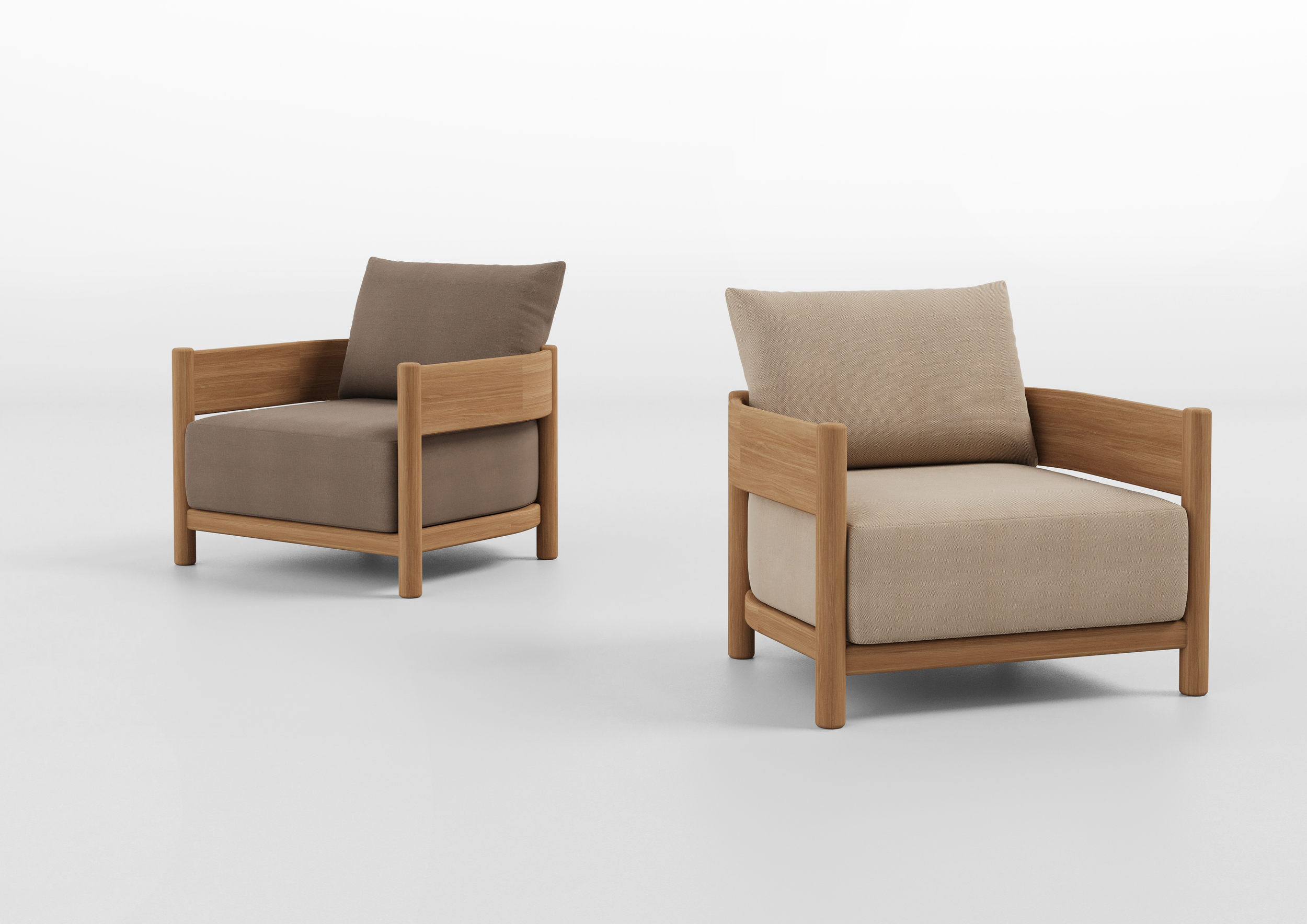 Broad, sculptural surfaces in solid teak allow the natural grain and warmth of the wood to take centre stage in the Mara. Every curve and edge has been carefully softened, creating a collection that is bold in scale yet gentle in detail. Deep cushions sit within the frame, while a low-profile coffee table anchors the arrangement. This is a collection where the material truly speaks for itself.